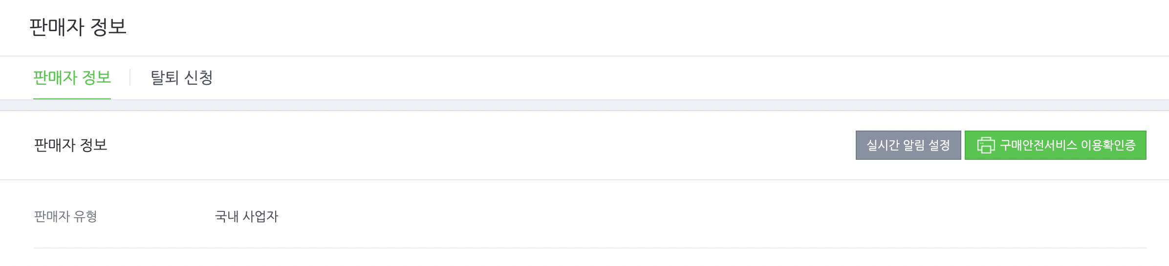 스마트스토어나 쿠팡 플랫폼을 이용하는 방법이 가장 빠릅니다. 일반적으로 온라인 판매를 할때 가장 많이 이용하시는 스마트스토어를 예로 안내드리겠습니다. 스마트스토어 판매자센터 가입 후 판매자정보에 들어가면 우측 상단에 "구매안전서비스 이용확인증"란이 있습니다. 이것을 클릭해 주세요.